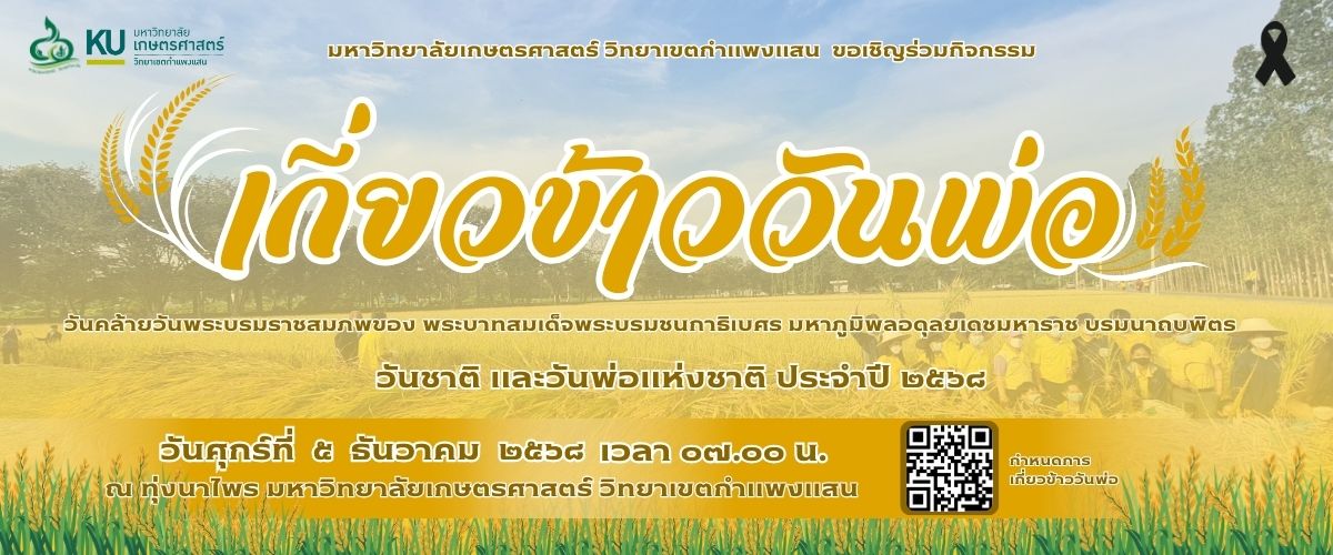 ขอเชิญร่วมกิจกรรม "เกี่ยวข้าววันพ่อ" ประจำปี 2568 ณ ทุ่งนาไพร ม.เกษตร กำแพงแสน